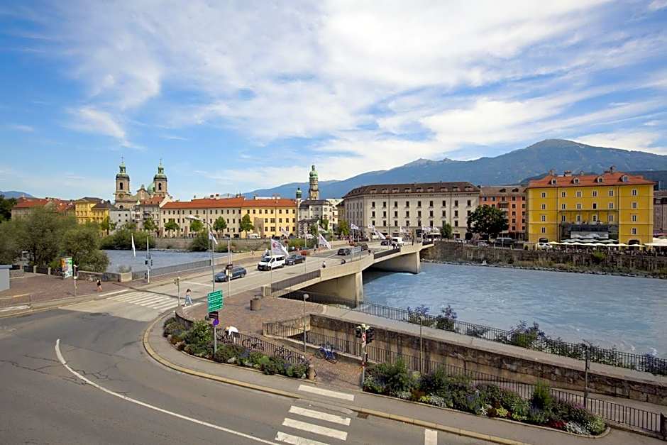 This room offers a view of the old town, the river and the mountains.